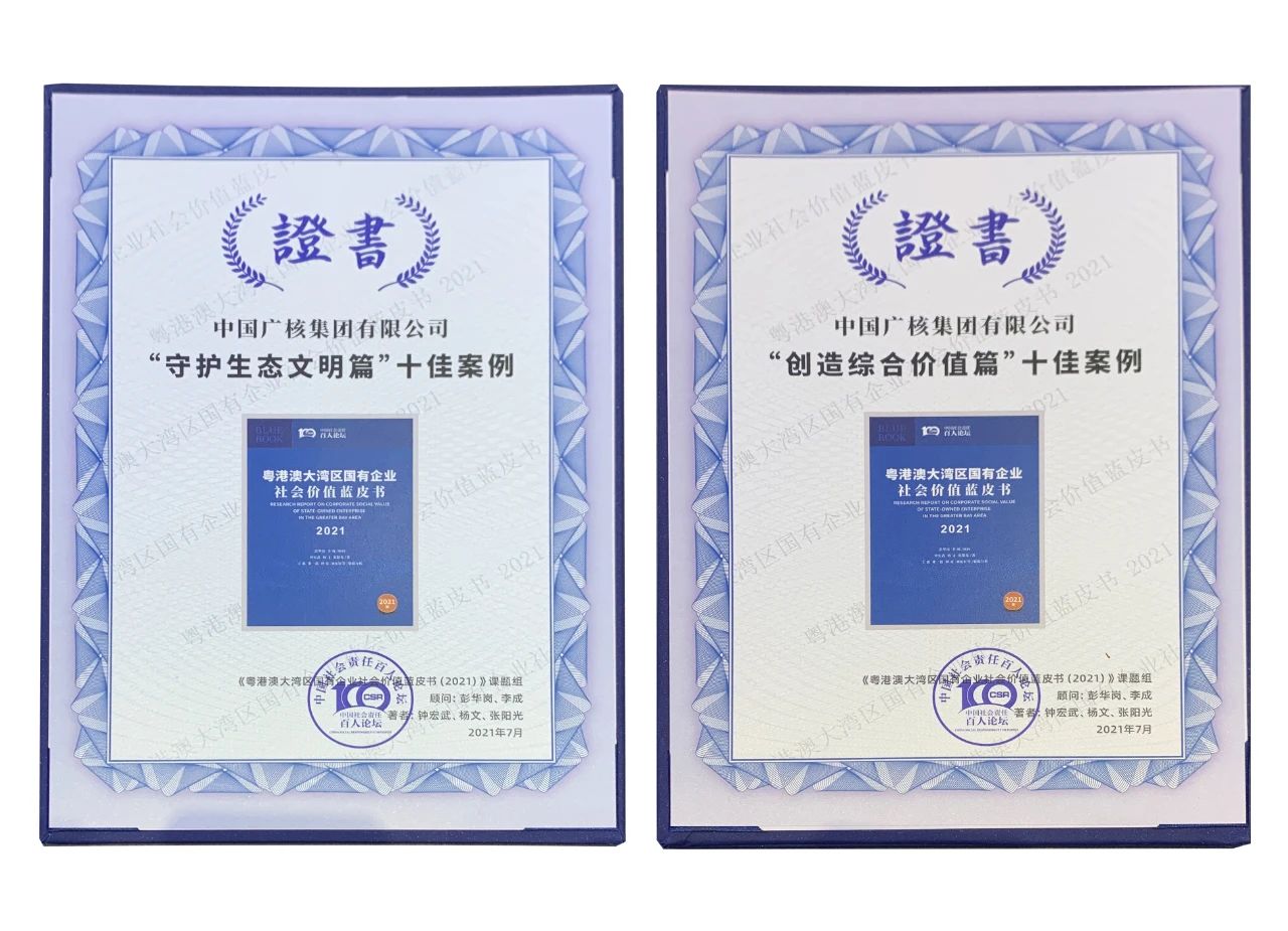 論壇還發布了《粵港澳大灣區國企社會價值藍皮書(2021)》,中廣核《守護灣區萬家燈火,共繪灣區碧海藍天》、《成長于斯、回報于斯,與項目所在地同發展,共進步》兩個案例入選并獲評為優秀案例。