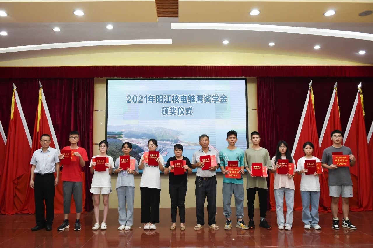 8月26日上午,在臨近開學之際,陽江核電有限公司(簡稱“陽江核電”)在廣東省陽江市陽東區東平鎮舉行2021年陽江核電雛鷹獎學金頒獎儀式,表彰和獎勵東平鎮允泊村37名考上高等院校和重點高中的優秀學子。自2014年設立獎學金以來,累計有195人獲得“陽江核電雛鷹獎學金”。