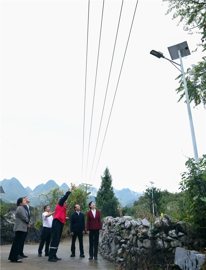 ▲李歷一行檢查凌云縣隴槐村太陽能路燈項(xiàng)目實(shí)施情況