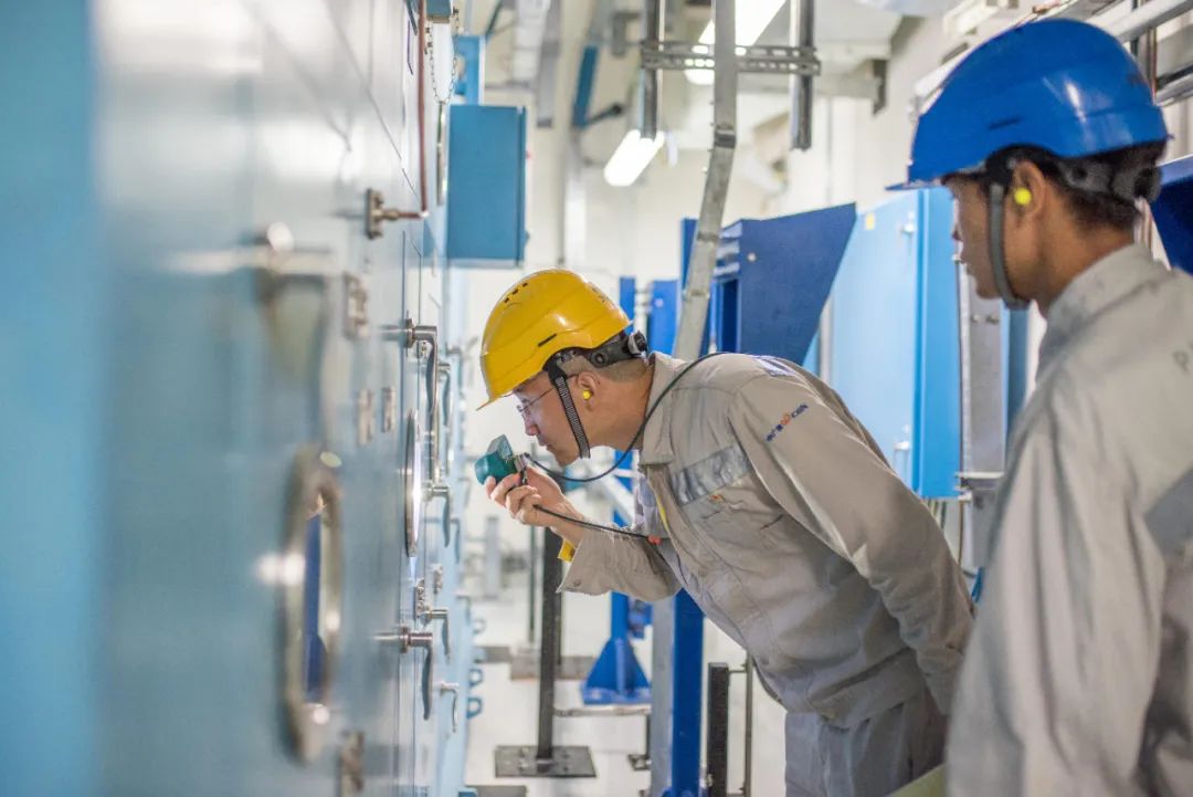 陽江核電有限公司吹響能源保供攻堅戰“集結號”,多措并舉,多發滿發。圖為陽江核電有限公司設備工程師楊雁宇為了保障核電機組穩定運行,對重要廠用水系統、設備情況進行狀態檢查。