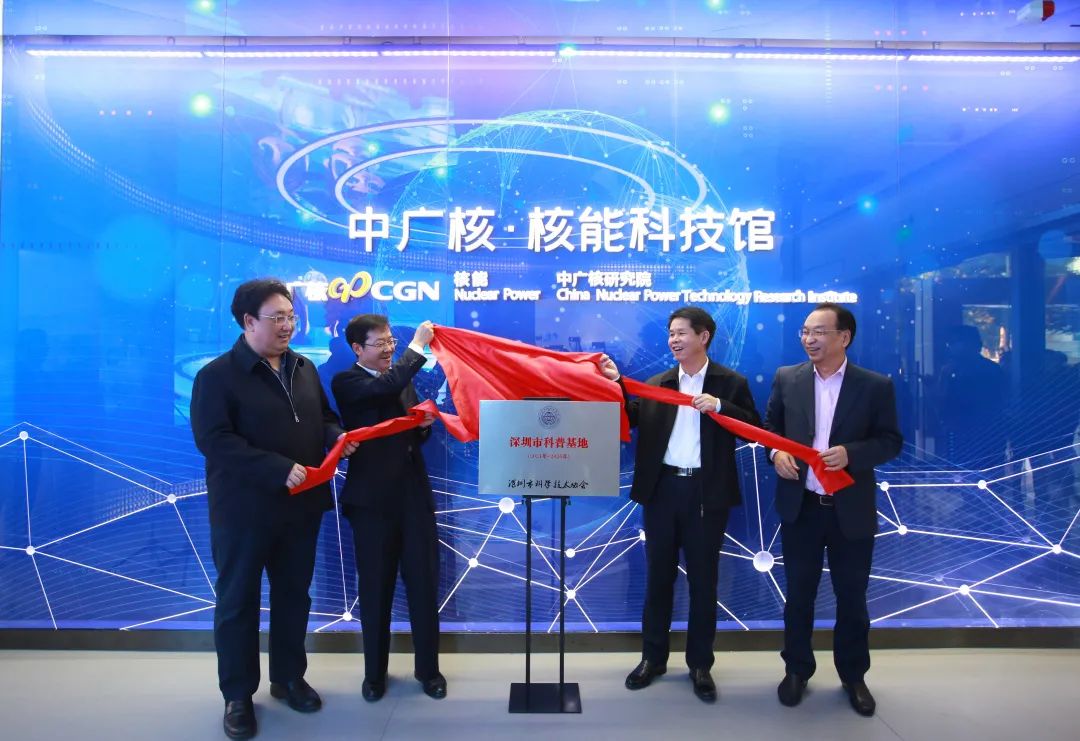科技展上,由中廣核研究院運營的中廣核核能科技館被深圳市科協認定為“深圳市科普基地”,劉建軍、蔣宇揚、龐松濤、王安共同為“深圳市科普基地”揭牌。