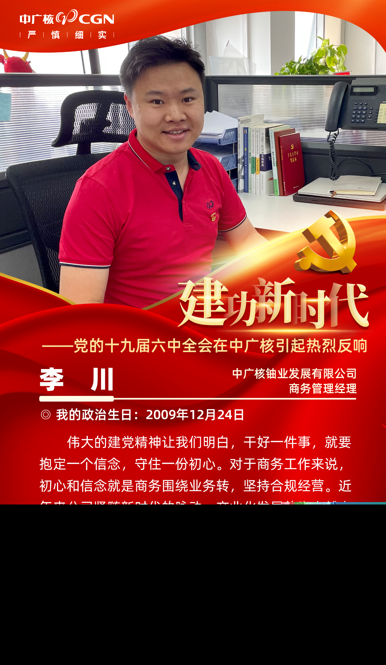 十九屆六中全會全面總結了黨的百年奮斗輝煌偉大成就歷史意義和歷史經驗,具有重大現實意義和深遠歷史意義。11月15日下午中國廣核集團有限公司黨委召開專題會議集體學習全會精神,全面動員部署中國廣核集團(簡稱“中廣核”)學習宣傳貫徹有關工作。十九屆六中全會在中廣核基層黨員干部中引起熱烈反響,大家表示將更加緊密地團結在以習近平同志為核心的黨中央周圍,大力弘揚建黨精神,匯聚起堅定歷史自信,創造歷史偉業的磅礴力量,為推動中廣核高質量發展,實現中華民族偉大復興而不懈奮斗。