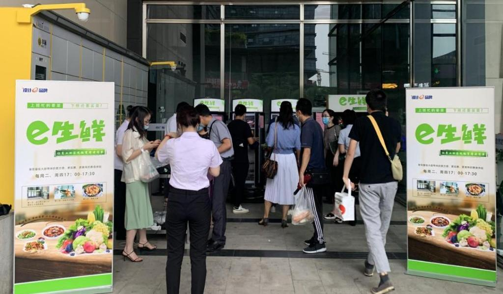▲員工下班后紛紛到“生鮮e站”領取提前訂好的半成品菜