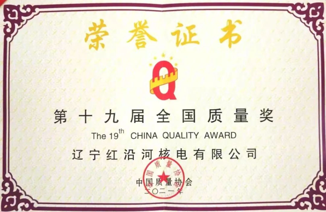 12月2日,第十九屆全國質量獎頒獎儀式在北京舉行,遼寧紅沿河核電有限公司(簡稱:“紅沿河核電”)從近百家申報企業中脫穎而出,獲頒全國質量獎。