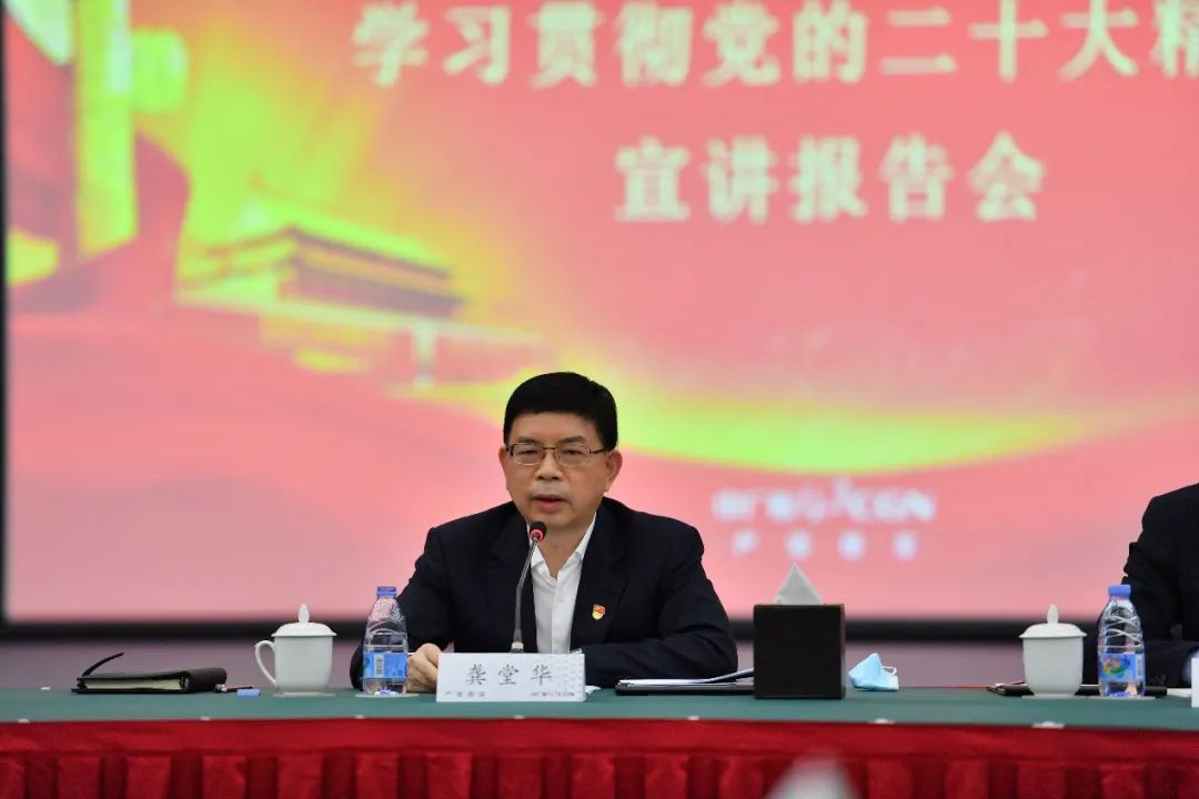 宣講會上,龔堂華指出,黨的二十大是在全黨全國各族人民邁上全面建設(shè)社會主義現(xiàn)代化國家新征程、向第二個(gè)百年奮斗目標(biāo)進(jìn)軍的關(guān)鍵時(shí)刻召開的一次十分重要的大會,是一次高舉旗幟、凝聚力量、團(tuán)結(jié)奮進(jìn)的大會。習(xí)近平總書記的報(bào)告,深刻闡釋了新時(shí)代堅(jiān)持和發(fā)展中國特色社會主義的一系列重大理論和實(shí)踐問題,描繪了全面建設(shè)社會主義現(xiàn)代化國家、全面推進(jìn)中華民族偉大復(fù)興的宏偉藍(lán)圖,為新時(shí)代新征程黨和國家事業(yè)發(fā)展、實(shí)現(xiàn)第二個(gè)百年奮斗目標(biāo)指明了前進(jìn)方向、確立了行動(dòng)指南,是黨和人民智慧的結(jié)晶,是黨團(tuán)結(jié)帶領(lǐng)全國各族人民奪取中國特色社會主義新勝利的政治宣言和行動(dòng)綱領(lǐng),是馬克思主義的綱領(lǐng)性文獻(xiàn)。