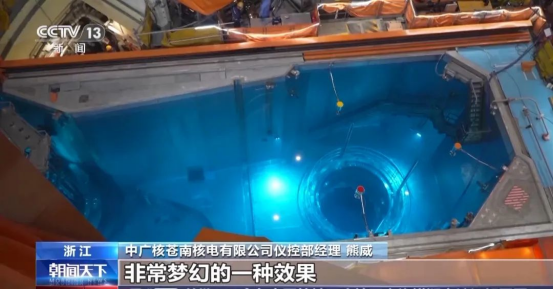 “這個區域就是整個核島廠房最核心的區域,我們一般叫反應堆水池。這里面的液體是含硼酸的溶液,所以呈現的效果是非常漂亮,非常夢幻的?,F在因為是整體的系統調試階段,這個階段把水先充上,檢查整個水池的泄漏情況,主要是對前期的密封效果進行檢驗?!毙芡榻B到。